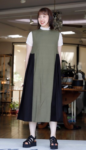 サイドプリーツのバイカラーワンピース