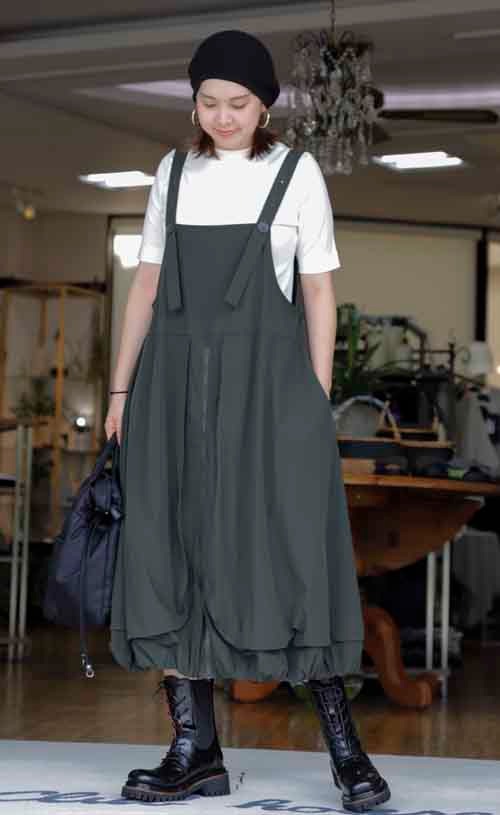 裾はふっくらバルーンシルエットのワンピース