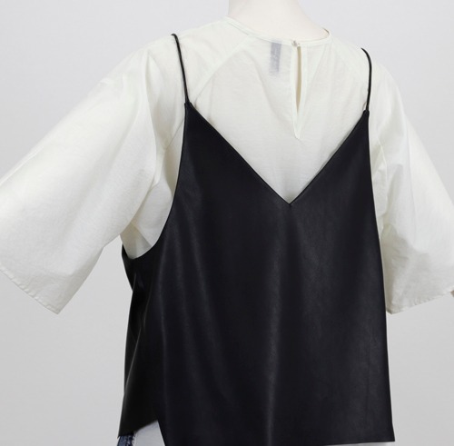 袖にラインのプルオーバーはネック、袖、脇にチュールコンビ
