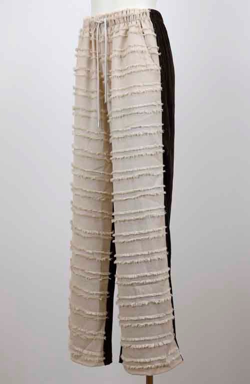 前は今旬のフリンジで後ろはプリーツのパンツ