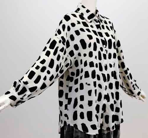 モノトーンプリントシャツはドロップショルダーのゆるシルエット