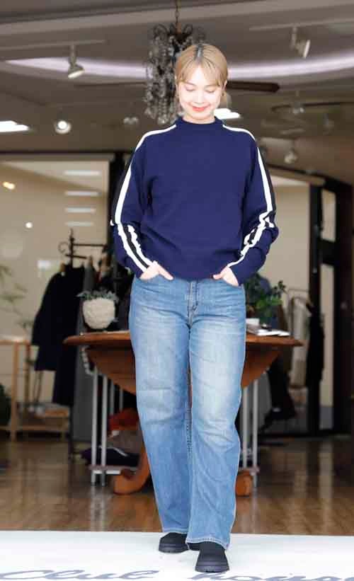 20251008(水)肩から袖にラインのヤク混紡セーター | clubhouse_kumamoto_online