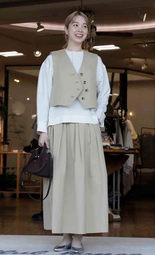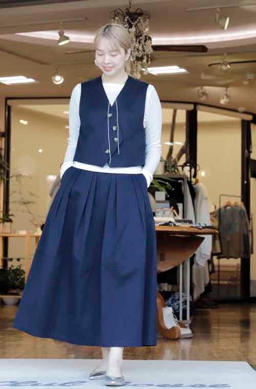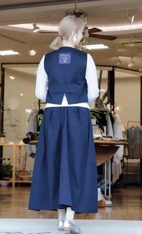コットンのベストとスカートのセットアップスーツ