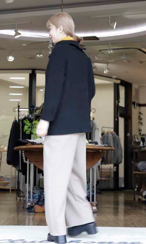 コクーンシルエットの起毛裏地のパンツ