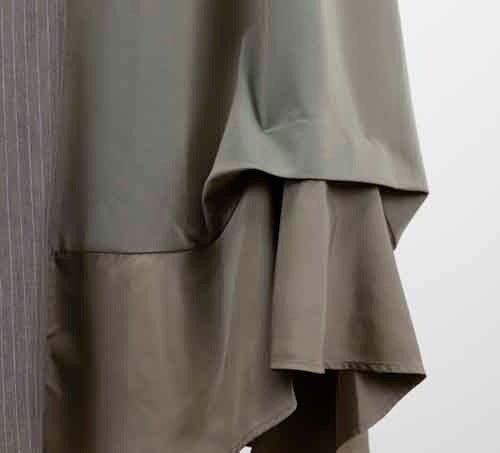 細いストライプのウエストはゴムシャーリング&ドロストデザイン