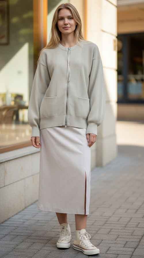 ドロップショルダーのゆるシルエットのカーディガン