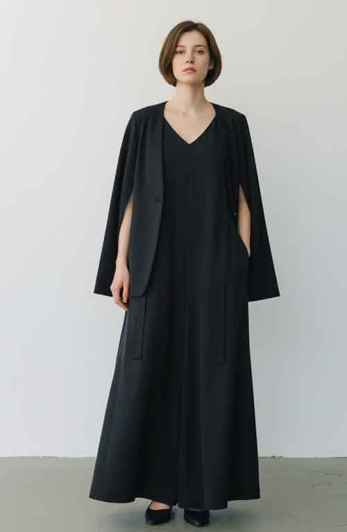 ベスト縫い付けのジャケットは肩掛けスタイルにも