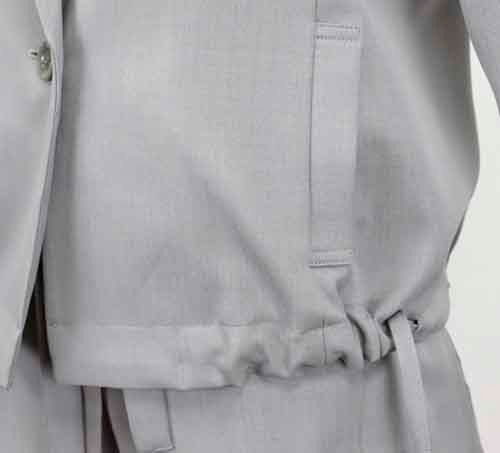 裾にドロストデザインのテーラードジャケットとセンタープレスのベイカーパンツ