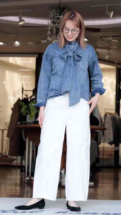 脇にハギ縫い替えのワイドシルエットデニム ¥14080
