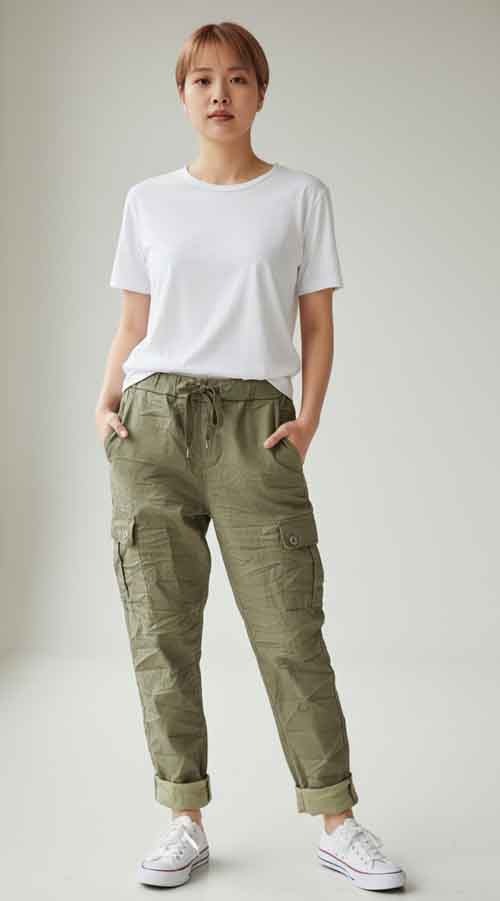 クシュクシュ加工の柔らか伸び伸びストレッチパンツ