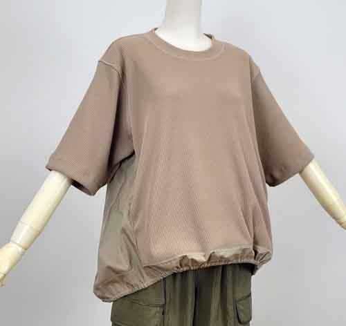 裾にドロストデザインの異素材コンビTee