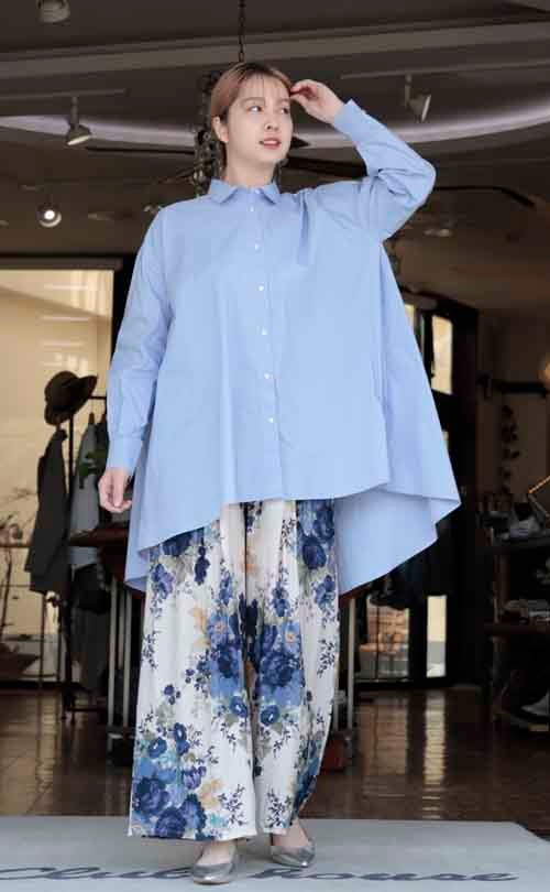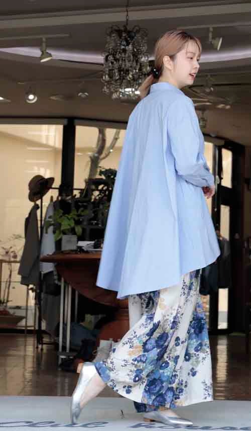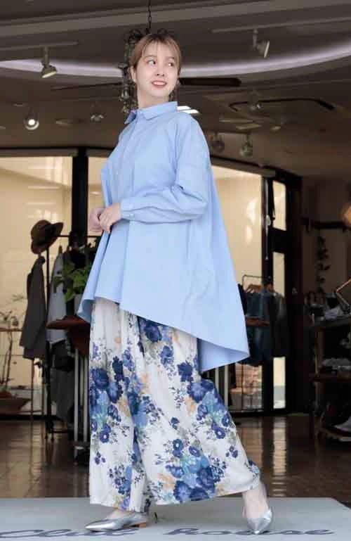 おなか周りをそっと包み込み裾へすっきり細見せシルエットのパンツ