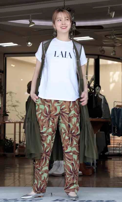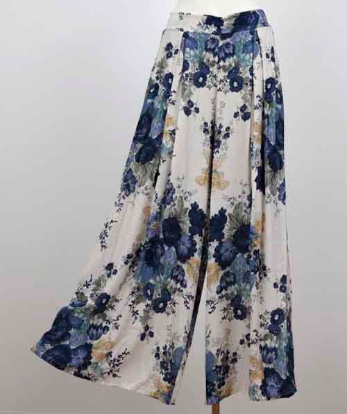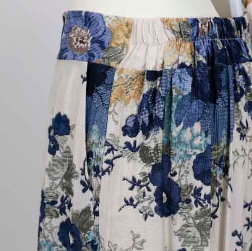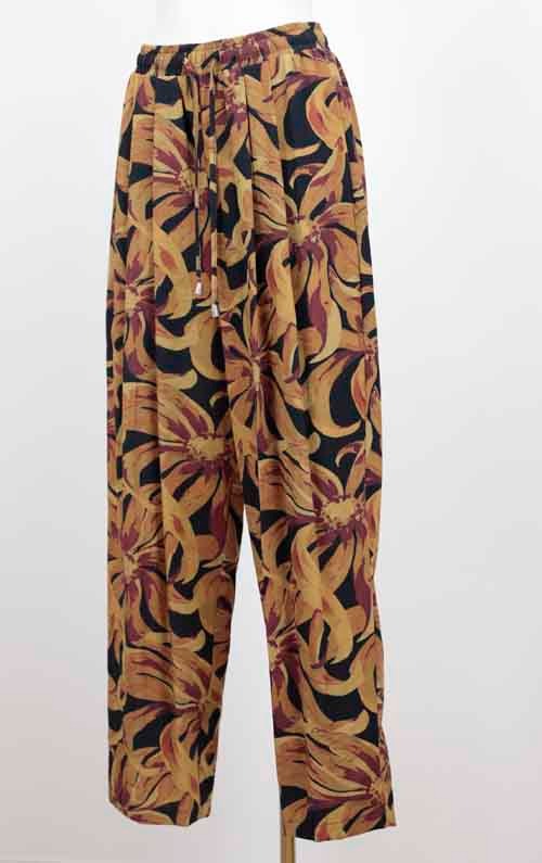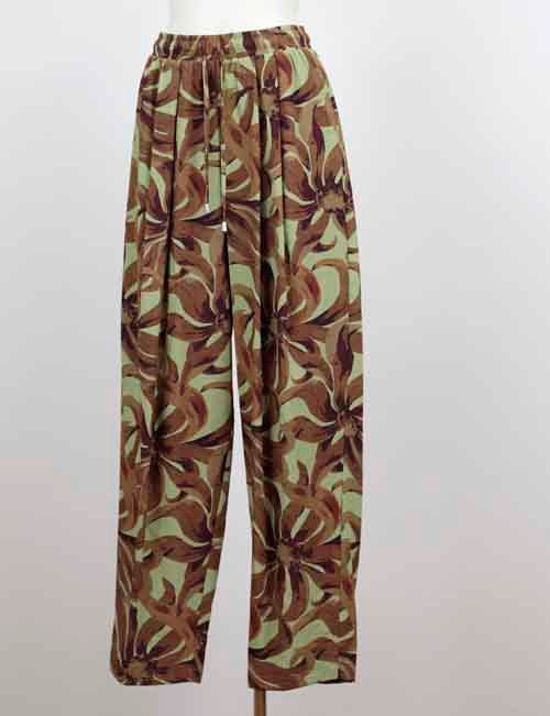 おなか周りを優しく包み込むタックプリーツのプリントパンツ