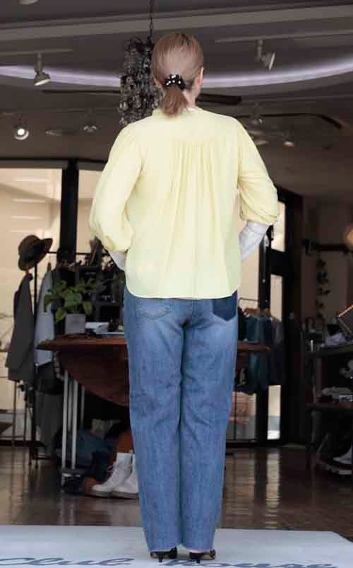 胸元と背中にギャザーのブラウス