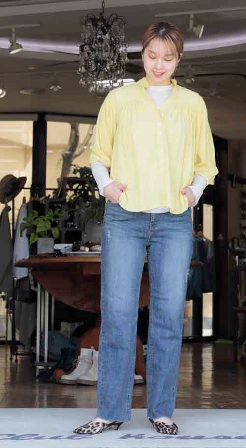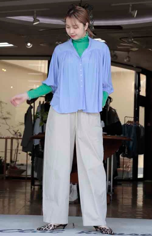 柔らか素材のクロップド丈袖のブラウスです