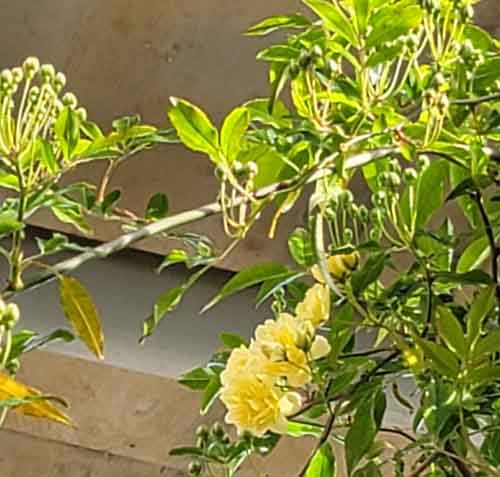 クラブハウス駐車場のモッコウバラ咲きました!