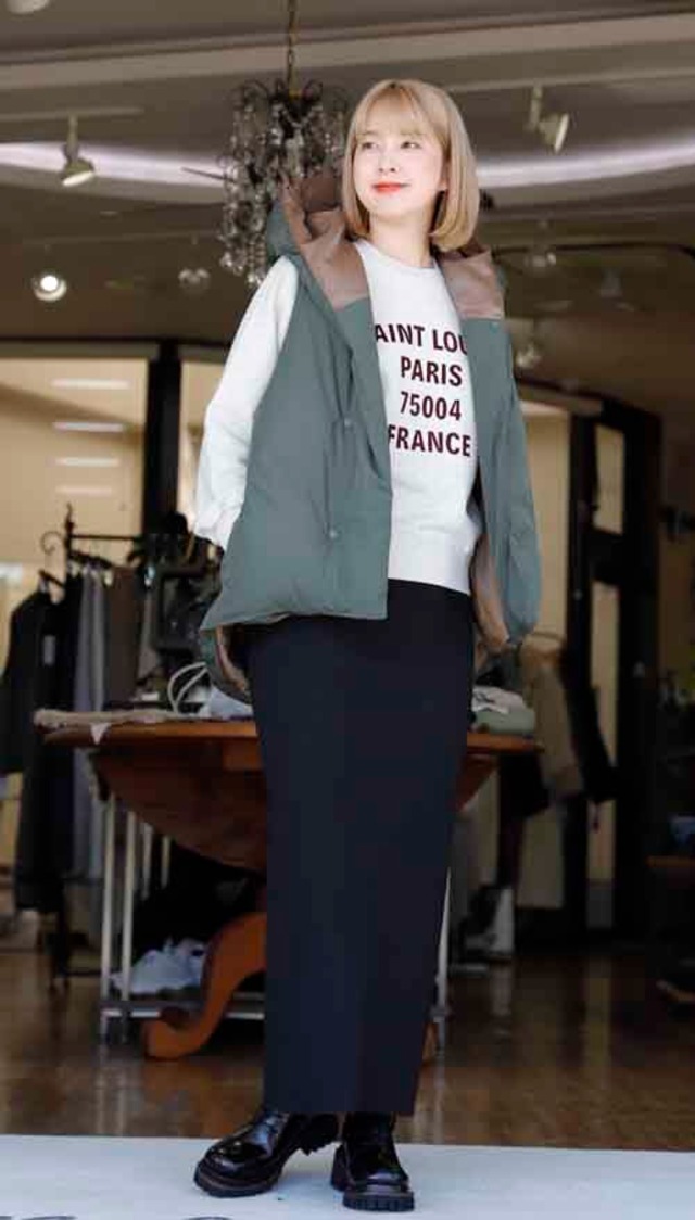 ※ご来店のお客様を優先させて頂きます。在庫確認の為に必ずクラブハウスへご連絡下さい(電話096-387-5570 メール[email protected]) ややコンパクトなシルエットのダウンベスト。両脇にもちもちコンビ。フロントは上下に開閉のダブルファスナーでポケットはファスナー付き。表はナイロン。ダウン80%フェザー20%。着丈の目安はスタッフの身長159cm。3カラー(オフホワイト、カーキ、ブラック