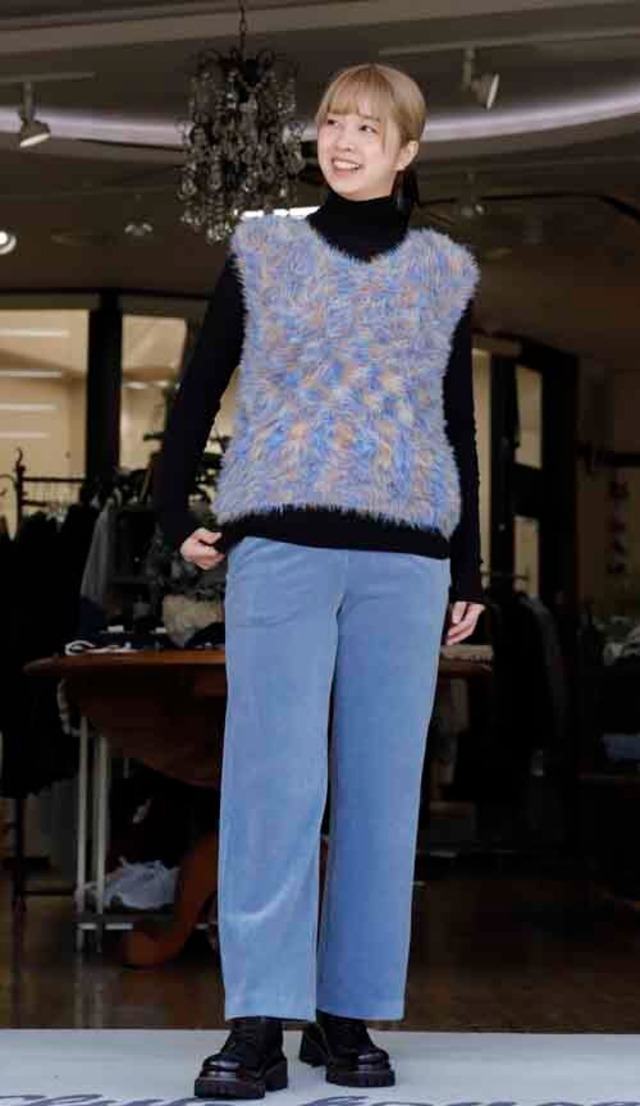※ご来店のお客様を優先させて頂きます。在庫確認の為に必ずクラブハウスへご連絡下さい(電話096-387-5570 メール[email protected]) ミックスカラーのふわふわベスト。柔らかなナイロンモールです。袖元は程よい大きさです。着丈の目安はスタッフの身長168cm。2カラー(ブルー系、グレー系)