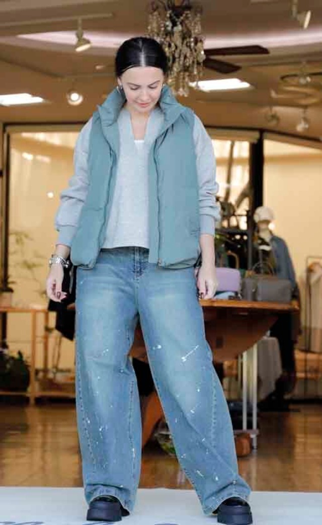 ※ご来店のお客様を優先させて頂きます。在庫確認の為に必ずクラブハウスへご連絡下さい(電話096-387-5570 メール[email protected])ダブル襟のスタンドカラーダウンベスト。両脇のドロストをキュッと!ダウン80%フェザー20%。着丈の目安はスタッフの身長159cm。3カラー(ライトブルー、アイボリー、スモークグリーン