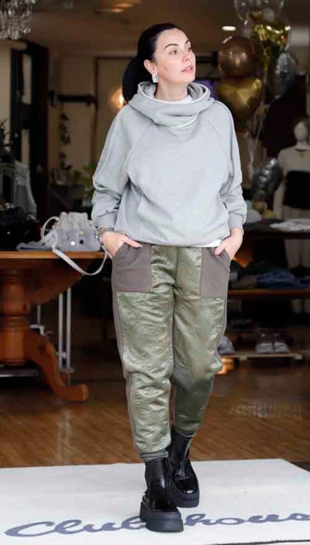 ※ご来店のお客様を優先させて頂きます。在庫確認の為に必ずクラブハウスへご連絡下さい(電話096-387-5570 メール[email protected]) あったかフリースパンツに光沢素材のキルティングコンビです。ポリエステルのフリースとアセテートキルティングコンビ。さっと穿けるゴムシャーリングウエストにはドロストデザイン。ポケットは脇と後ろに。着丈の目安(カーキ)身長159cm。ネイビー着用スタッフの身長168cm。