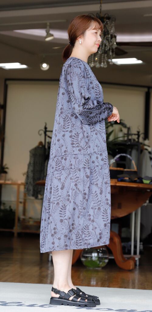 ※ご来店のお客様を優先させて頂きます。在庫確認の為に必ずクラブハウスへご連絡下さい(電話096-387-5570 メール[email protected]) モノトーンプリントのワンピース。ポリエステル。着丈の目安はスタッフの身長168cm。ブルーグレー