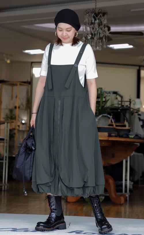 ※ご来店のお客様を優先させて頂きます。在庫確認の為に必ずクラブハウスへご連絡下さい(電話096-387-5570 メール[email protected]) ふっくらバルーンシルエットのワンピース。センターにファスナースリット。ストラップはアジャスター付き。ナイロン・ポリウレタン。着丈の目安はスタッフの身長168cm。カーキ