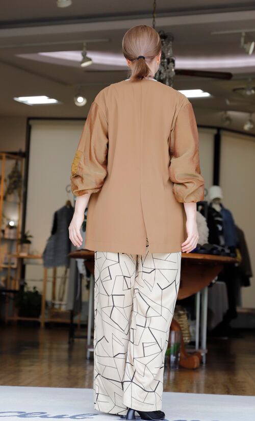 ※ご来店のお客様を優先させて頂きます。在庫確認の為に必ずクラブハウスへご連絡下さい(電話096-387-5570 メール[email protected])ボタンのデザインの違うダブルジャケット。袖にはチュール重ね。左袖はファスナーポケット。ポリエステル。チュールはナイロン。着丈の目安はスタッフの身長168cm。ブラウン