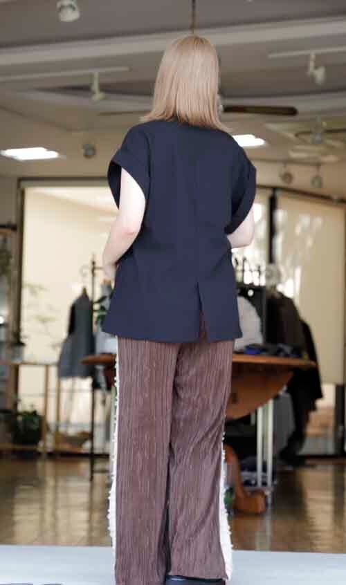 ※ご来店のお客様を優先させて頂きます。在庫確認の為に必ずクラブハウスへご連絡下さい(電話096-387-5570 メール[email protected])柔らかで薄いかぁるいジャケットはスリーブレスのデザイン。背中の裾にスリット。ポリエステル・ポリウレタン。着丈の目安はスタッフの身長168cm。ブラック
