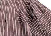 ※ご来店のお客様を優先させて頂きます。在庫確認の為に必ずクラブハウスへご連絡下さい(電話096-387-5570 メール[email protected])前から後ろへバックデザインのストライプシャツ。ふっくら袖。フロントは隠しボタン。セルロース・ポリエステル。着丈の目安はスタッフの身長168cm。チョコ、アイボリー