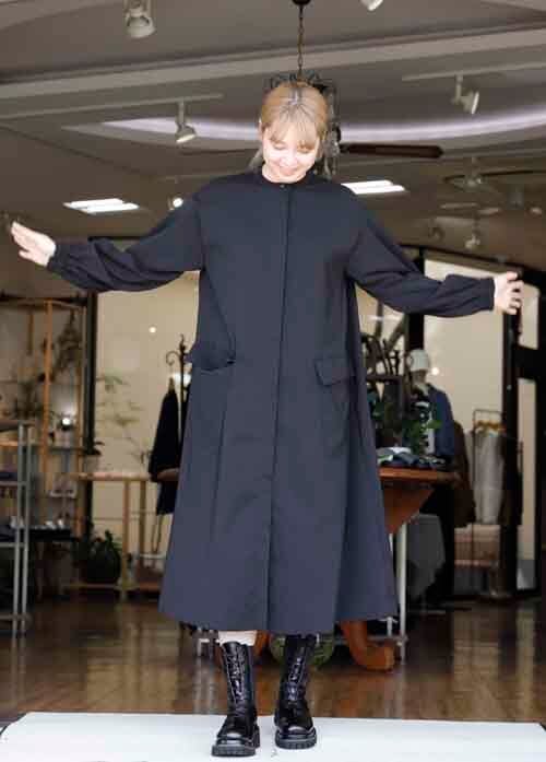 ※ご来店のお客様を優先させて頂きます。在庫確認の為に必ずクラブハウスへご連絡下さい(電話096-387-5570 メール[email protected])フロントの隠しボタンを全開にしてコート兼用のワンピースです。ポリエステル・ポリウレタン。袖口はゴムシャーリングのふっくらシルエット。着丈の目安はスタッフの身長168cm。グレー、カーキ