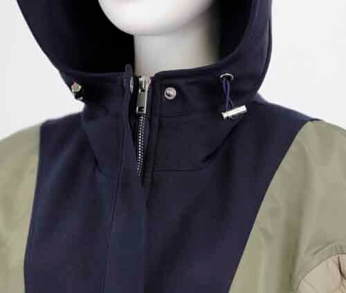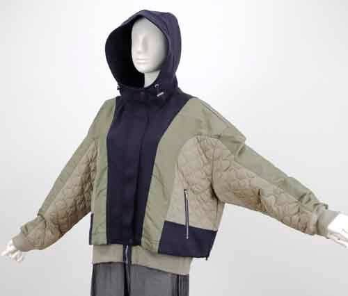 ※ご来店のお客様を優先させて頂きます。在庫確認の為に必ずクラブハウスへご連絡下さい(電話096-387-5570 メール[email protected])異素材コンビのパーカジャケットはレイヤードデザイン。センターからフード、バックへカットソー、脇と袖内側はキルティング。二枚重ねのレイヤードデザイン。着丈の目安はスタッフの身長159cm。3カラー。ネイビーのフードにライトカーキとベージュのキルティング、杢グレーのフードにグレージュとブラックのキルティング、ブラックのフートと脇ライトカーキにカーキのキルティング