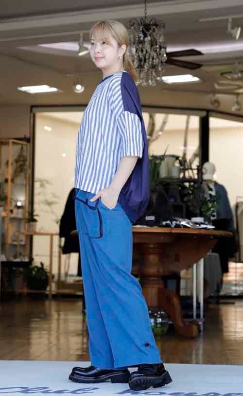 ※ご来店のお客様を優先させて頂きます。在庫確認の為に必ずクラブハウスへご連絡下さい(電話096-387-5570 メール[email protected])#vent blanc ゆるりシルエットのブラウスは前はホワイトにネイビーストライプでふっくらの背中はネイビー。素材はストライプはコットン・リネンで背中はコットン。着丈の目安はスタッフの身長168cm。