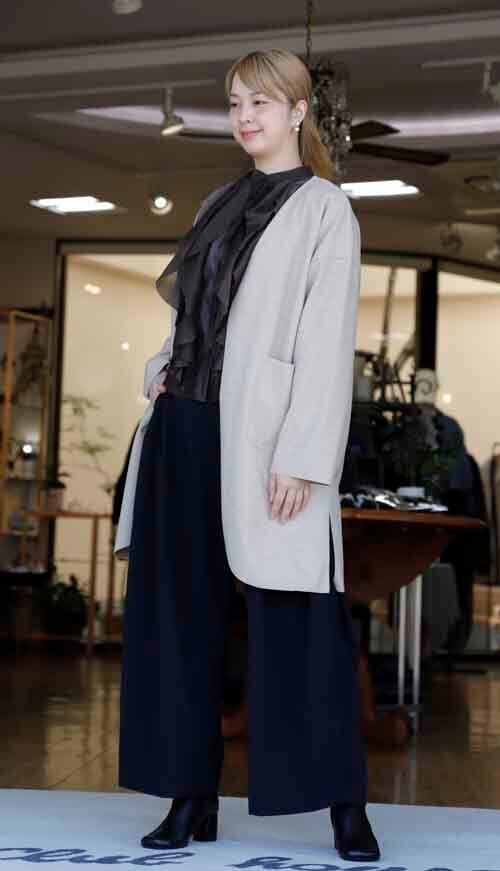 ※ご来店のお客様を優先させて頂きます。在庫確認の為に必ずクラブハウスへご連絡下さい(電話096-387-5570 メール[email protected]) フラノタッチのコートです。フロントは釦無しのさっと羽織るタイプ。ドロップショルダーのゆるシルエットです。ポリエステル・レーヨン。着丈の目安はスタッフの身長168cm。ライトグレー、ベージュ、ブラック