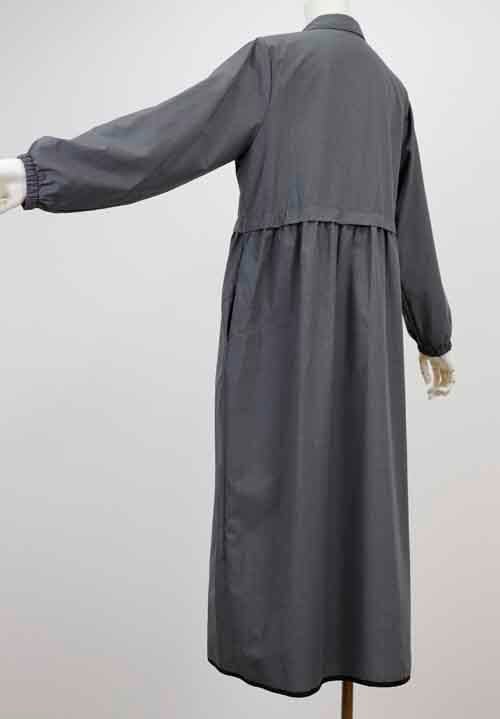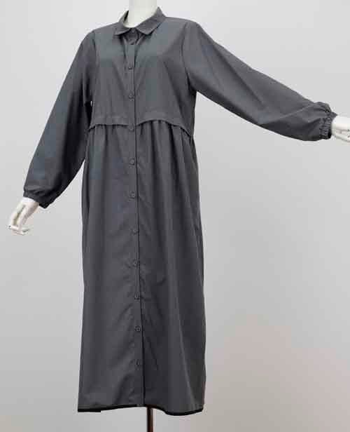 ※ご来店のお客様を優先させて頂きます。在庫確認の為に必ずクラブハウスへご連絡下さい(電話096-387-5570 メール[email protected]) フロントのボタン全開でアウターにも。ウエストに縫い替えデザインのシャツワンピースです。着丈の目安はスタッフの身長168cm。グレー、ブラック