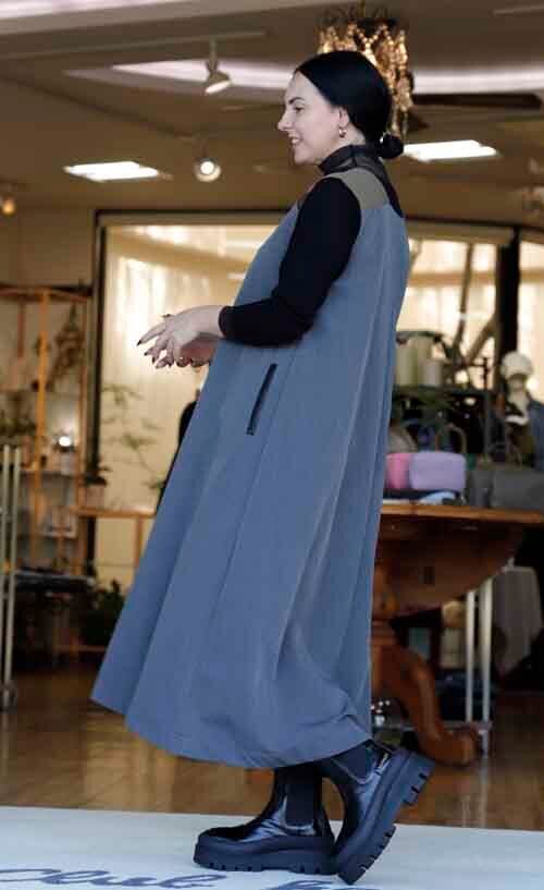※ご来店のお客様を優先させて頂きます。在庫確認の為に必ずクラブハウスへご連絡下さい(電話096-387-5570 メール[email protected]) テントラインのワンピースです。肩には配色とエコレザー。ポケットと裾の裏側にエコレザー。ポリエステル・レーヨン・ポリウレタン。着丈の目安はスタッフの身長159cm。グレーには肩にカーキの配色とブラックのエコレザー、カーキは肩にネイビー配色とブラックのエコレザー