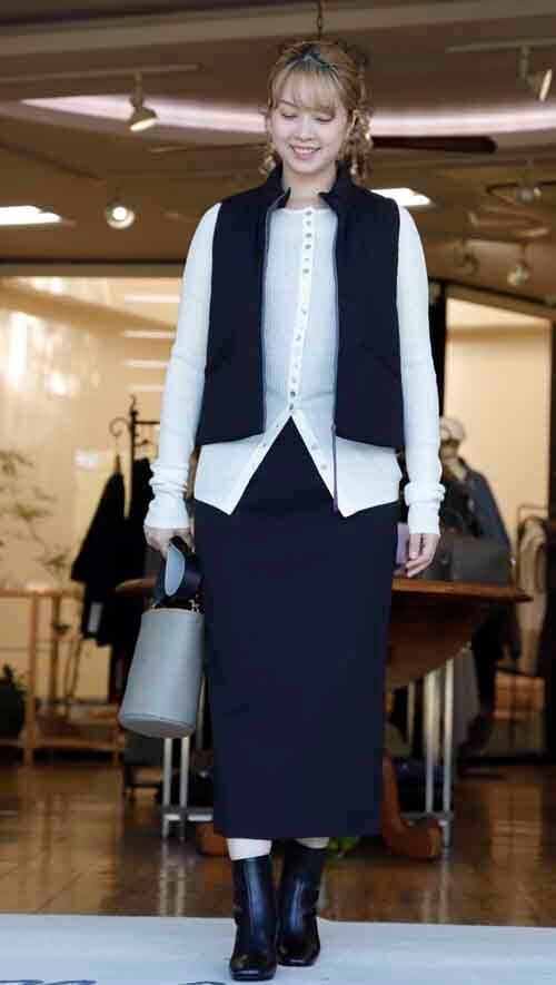 ※ご来店のお客様を優先させて頂きます。在庫確認の為に必ずクラブハウスへご連絡下さい(電話096-387-5570 メール[email protected])四角のキルティングシリーズです。タイトスカート。ベスト、ワンピースとセットアップスーツになります。さっと穿けるゴムシャーリングウエスト。両脇の縫い替えに沿ってポケット。ポリエステルの中綿入りです。着丈の目安はスタッフの身長168cm。2カラー(グレー、ブラック