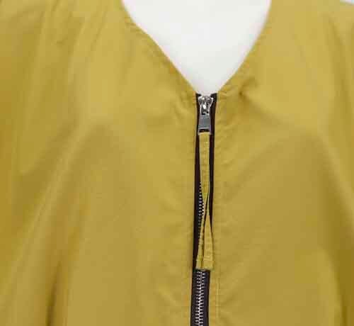 ※ご来店のお客様を優先させて頂きます。在庫確認の為に必ずクラブハウスへご連絡下さい(電話096-387-5570 メール[email protected])シャツスリーブのフロントファスナーのブルゾン。裾はタックプリーツのふっくらシルエット。ポリエステル・レーヨン。着丈の目安はスタッフの身長159cm。2カラー(マスタード、ブラック