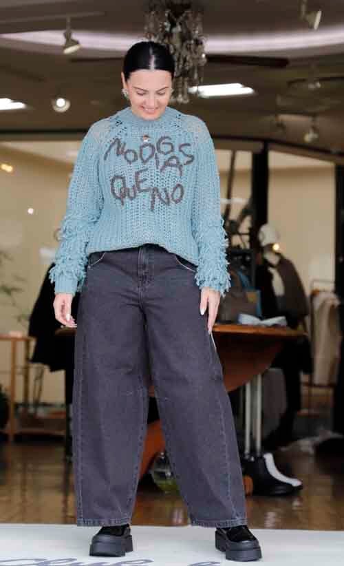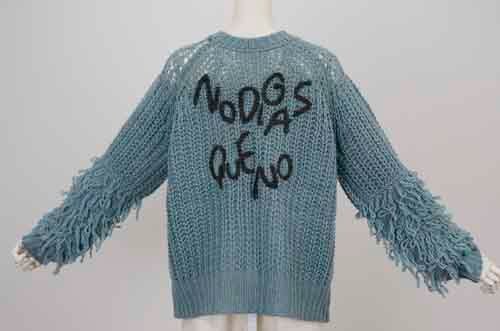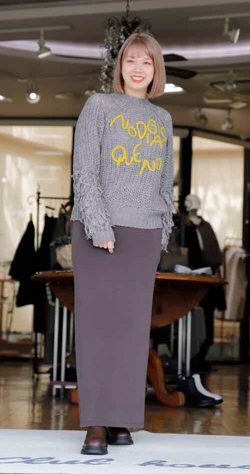 ※ご来店のお客様を優先させて頂きます。在庫確認の為に必ずクラブハウスへご連絡下さい(電話096-387-5570 メール[email protected])ししゅうロゴの透かし編みニット。アクリル・ウール。着丈の目安。グレーはスタッフの身長168cm。着丈の目安。ブルーグリーンはスタッフの身長159cm。華奢見えラグランスリーブで袖はフリンジデザイン。ブルーグリーン、グレー