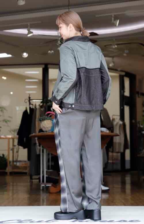 ※ご来店のお客様を優先させて頂きます。在庫確認の為に必ずクラブハウスへご連絡下さい(電話096-387-5570 メール[email protected]) 裾フレアーのGジャンは柔らかなデニムとポリエステルコンビ。前から後ろへ長いデザイン。着丈の目安はスタッフの身長168cm。4カラー(ブラックデニムとライトカーキ、インディゴデニムにブラック、インディゴデニムにグリーン、ベージュデニムにモカ