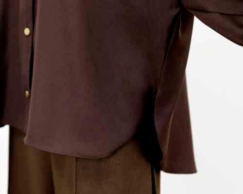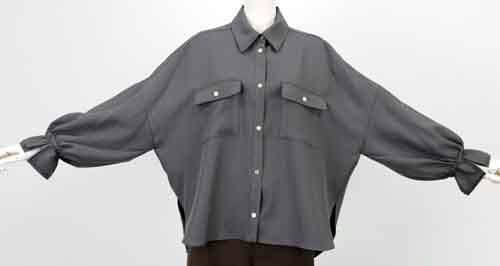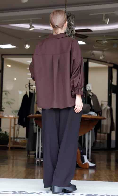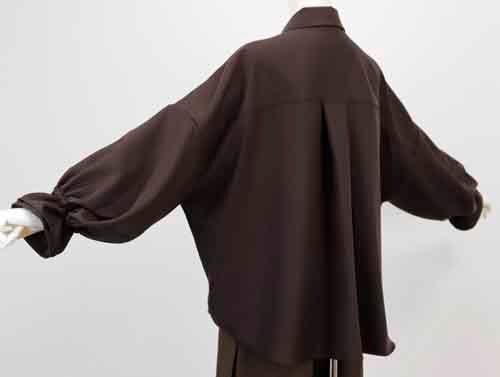 ※ご来店のお客様を優先させて頂きます。在庫確認の為に必ずクラブハウスへご連絡下さい(電話096-387-5570 メール[email protected]) ゆるり身頃のシャツはフロントにゴールド釦。ゴムシャーリングの袖口は二枚重ね。ポリエステル。着丈の目安はスタッフの身長168cm。3カラー(チョコ、グレー、ブラック