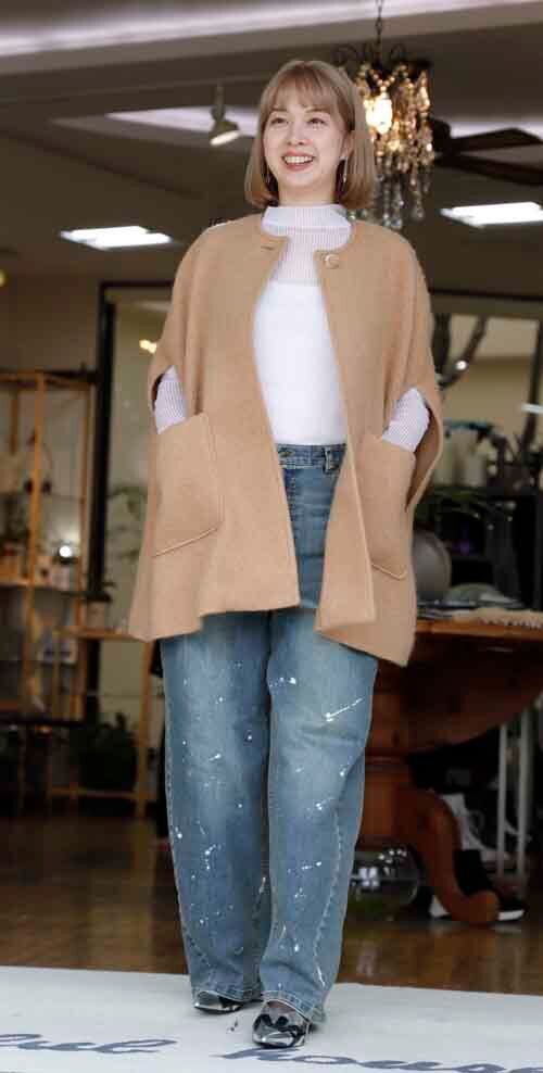 ※ご来店のお客様を優先させて頂きます。在庫確認の為に必ずクラブハウスへご連絡下さい(電話096-387-5570 メール[email protected]) ワンボタンのポンチョデザインジャケットはやわらかぬくもり。ウール・ナイロン・モヘア・アクリル。着丈の目安はスタッフの身長168cm。2カラー(キャメル、ブラック