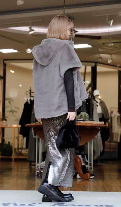 ※ご来店のお客様を優先させて頂きます。在庫確認の為に必ずクラブハウスへご連絡下さい(電話096-387-5570 メール[email protected])キャップスリーブのエコファーベスト。やわらかでふわふわです。前から後ろへ長い着丈です。裾にはドロストデザイン。着丈の目安はスタッフの身長168cm。アッシュグレー