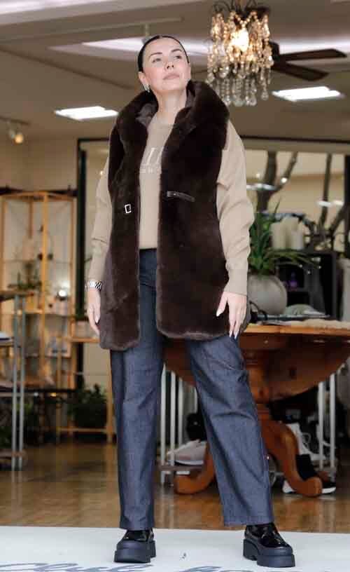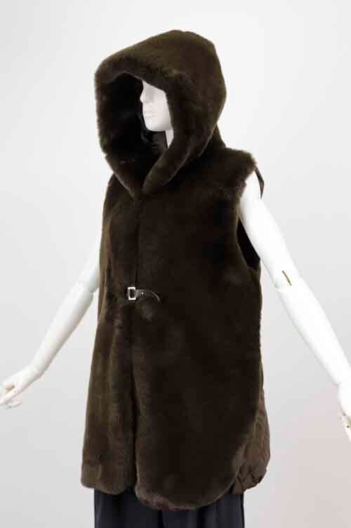 ※ご来店のお客様を優先させて頂きます。在庫確認の為に必ずクラブハウスへご連絡下さい(電話096-387-5570 メール[email protected])前身頃からフードへふぉわふぉわエコファーのダウンパーカベスト。ダウン80%フェザー20%。着丈の目安はスタッフの身長159cm。2カラー(チョコ、ブラック