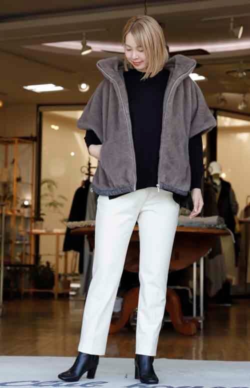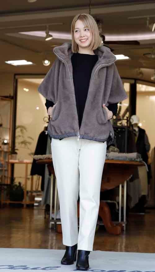 ※ご来店のお客様を優先させて頂きます。在庫確認の為に必ずクラブハウスへご連絡下さい(電話096-387-5570 メール[email protected])ゆるりシルエットのエコファーベスト。フロントはファスナー開き。襟裏とポケットにエコレザー。裾はドロストデザイン。ポリエステル。着丈の目安はスタッフの身長168cm。2カラー(グレー、ブラウン