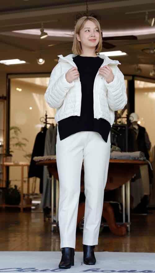 ※ご来店のお客様を優先させて頂きます。在庫確認の為に必ずクラブハウスへご連絡下さい(電話096-387-5570 メール[email protected])コンパクトなナイロンパーカはダウン90%フェザー10%です。裾の両脇にドロストデザイン。センタープレスのスリムパンツと。着丈の目安はスタッフの身長168cm。3カラー(ホワイト、カーキ、ブラック