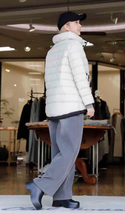 ※ご来店のお客様を優先させて頂きます。在庫確認の為に必ずクラブハウスへご連絡下さい(電話096-387-5570 メール[email protected])AiryNobleLucent ふっくら襟のショートコートはダウン90%フェザー10%です。フロントとポケットにパイピング。両脇にハンドウォームポケットとファスナーポケット。裾にはドロストデザイン。着丈の目安はスタッフの身長168cm。3カラー(ベージュにブラックパイピング、カーキにブラックパイピング、ブラックにカーキパイピング