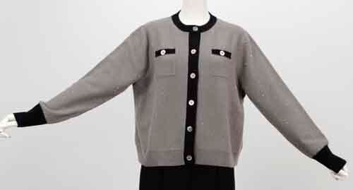 ※ご来店のお客様を優先させて頂きます。在庫確認の為に必ずクラブハウスへご連絡下さい(電話096-387-5570 メール[email protected]) ほんのりスパンコールの煌めく柔らかなカーディガン。胸元のポケットや縁にはバイカラー。ウール・ポリエステル。着丈の目安はスタッフの身長168cm。2カラー(グレーとブラックのバイカラー、ブラックにグレーのバイカラー