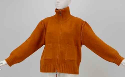 ※ご来店のお客様を優先させて頂きます。在庫確認の為に必ずクラブハウスへご連絡下さい(電話096-387-5570 メール[email protected])フロントは上下に開閉のダブルファスナーのニットブルゾン。ファスナーにはレザーのタブ付き。アクリル・ナイロン・ポリエステル。着丈の目安はスタッフの身長168cm。2カラー(オレンジ、グレー