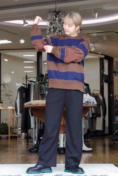 ※ご来店のお客様を優先させて頂きます。在庫確認の為に必ずクラブハウスへご連絡下さい(電話096-387-5570 メール[email protected])#JUNE BRIDE デイリーカジュアルを楽しめるスエット感覚のニットです。肘にはくしゅくしゅのナイロンコンビ。両脇にドロストデザイン。ポリエステルニット。着丈の目安はスタッフの身長168cm。無地は(レッド、ネイビー)ボーダーは(チョコにネイビーボーダー、ブラックオフホワイトボーダー
