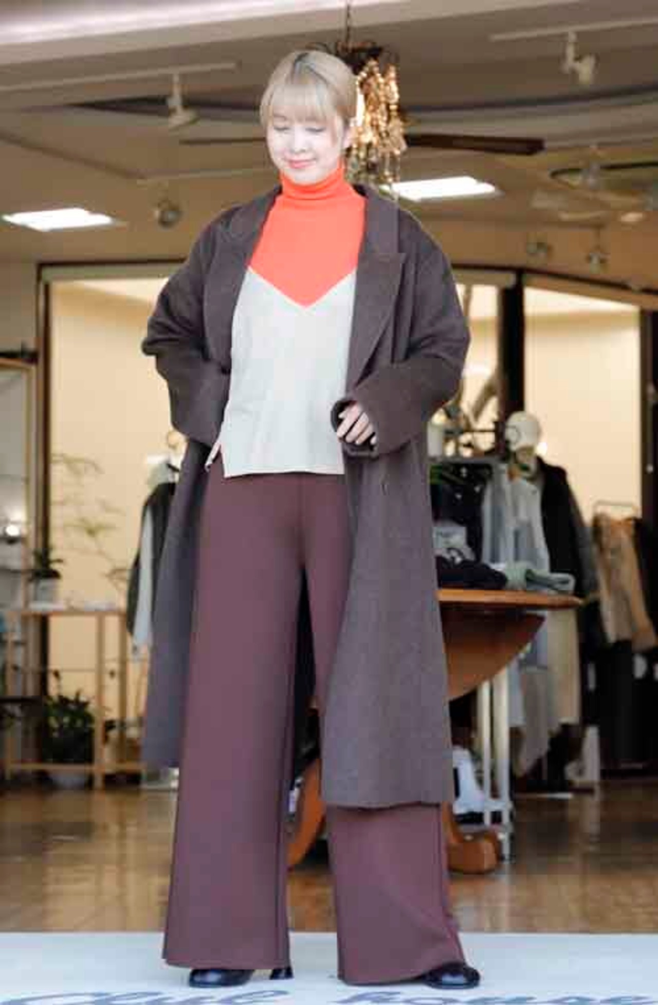 ※ご来店のお客様を優先させて頂きます。在庫確認の為に必ずクラブハウスへご連絡下さい(電話096-387-5570 メール[email protected])ウールコートとフロントファスナーベストのドッキング。コートはドロップショルダーのゆるシルエット。ベスト風の襟はボタンで取外し。着丈の目安はスタッフの身長168cm。グレー、チョコ、ブラック